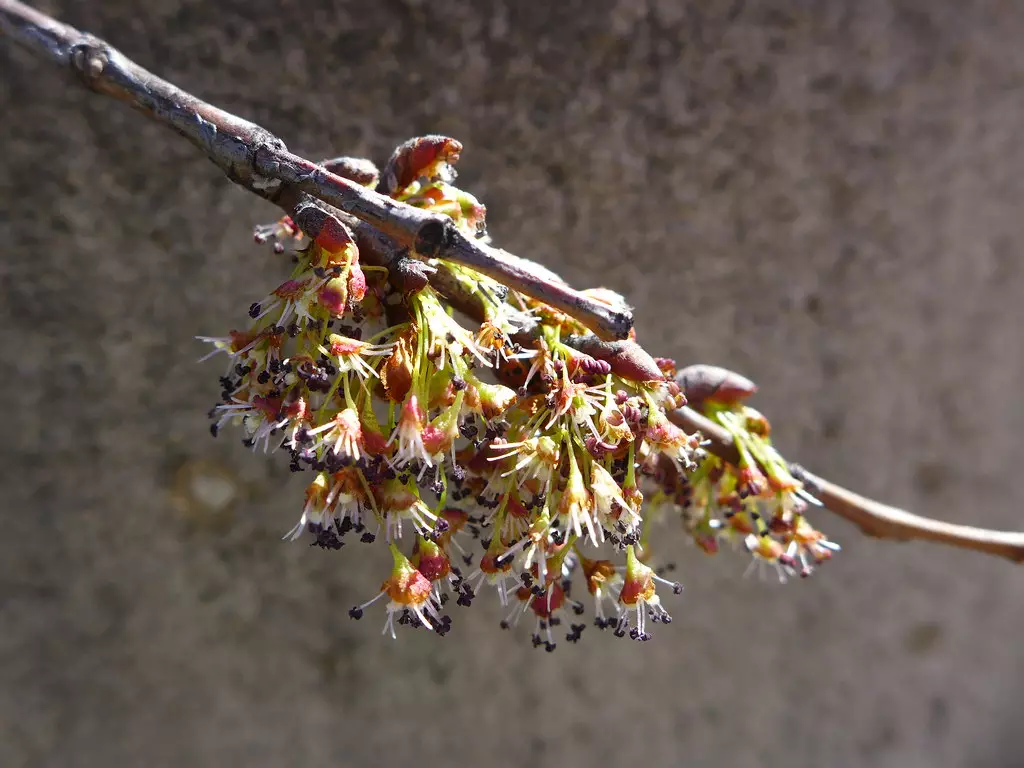 Flowers: Apetalous, small, clustered in fascicles on short pedicels; perfect or occasionally unisexual; appear before leaves.