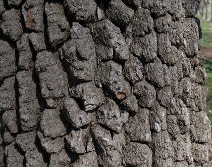 Bark: Thick, dark-gray to black; deeply fissured into square “blocky” plates resembling alligator skin [Briand, 2005]