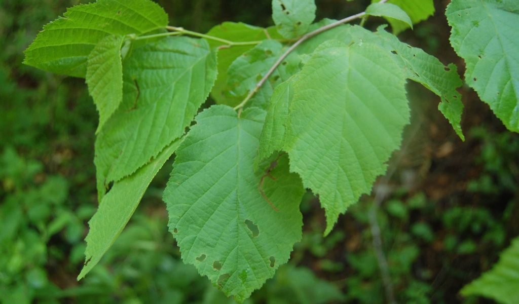 Leaves: Simple, alternate, broadly ovate to nearly round (6–12 cm long) with doubly serrated margins and acuminate tips. Upper surface dark green and rough; underside paler and softly pubescent. Fall color yellow to coppery brown.